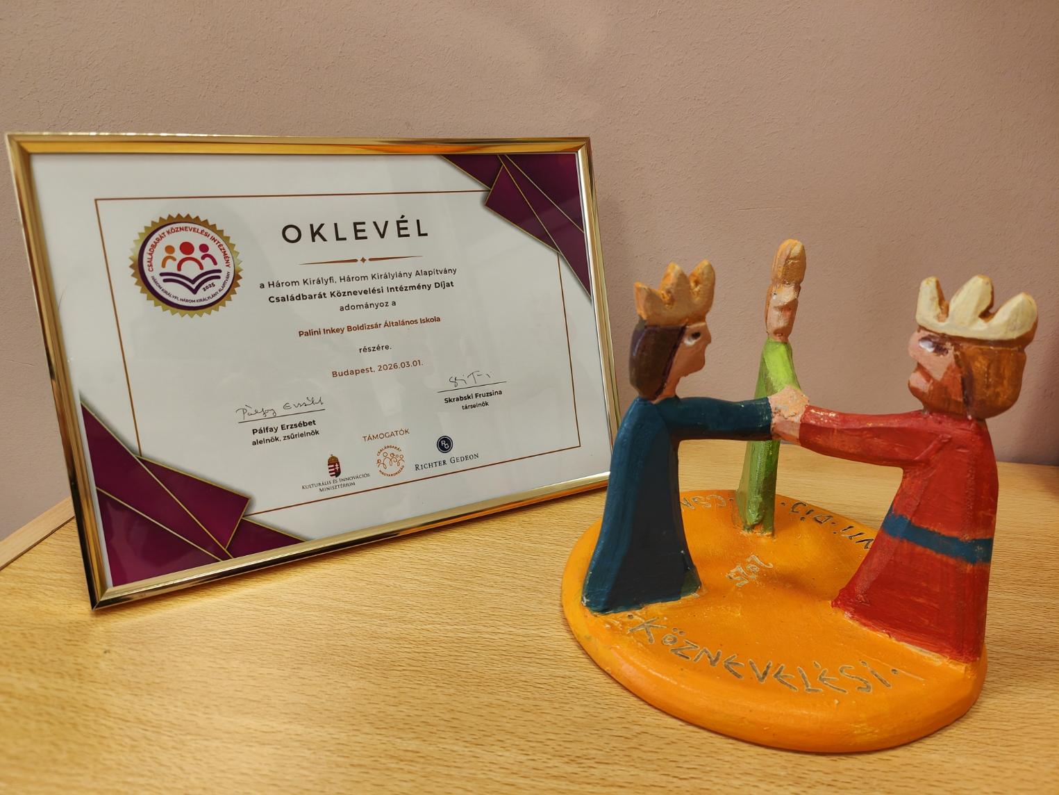 2026. március 1-én a budapesti Pedagógus Expón vehettük át a megtisztelő elismerést a díj fővédnökétől, dr. Balatoni Katalin miniszterelnöki biztostól és Skrabski Fruzsinától, a Három Királyfi Három Királylány elnökétől.