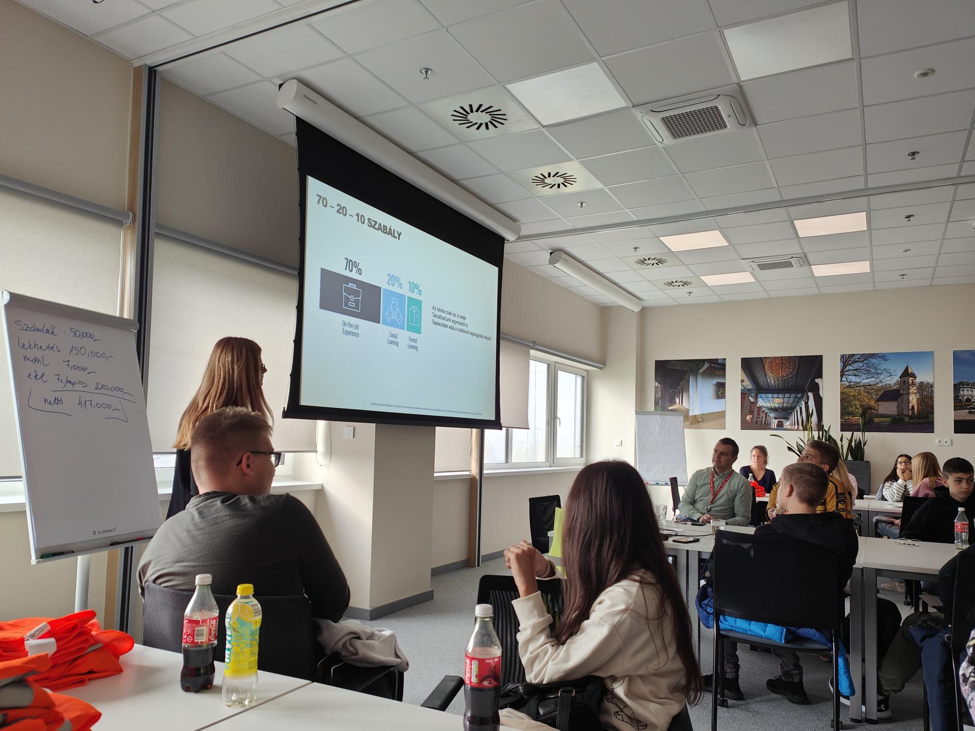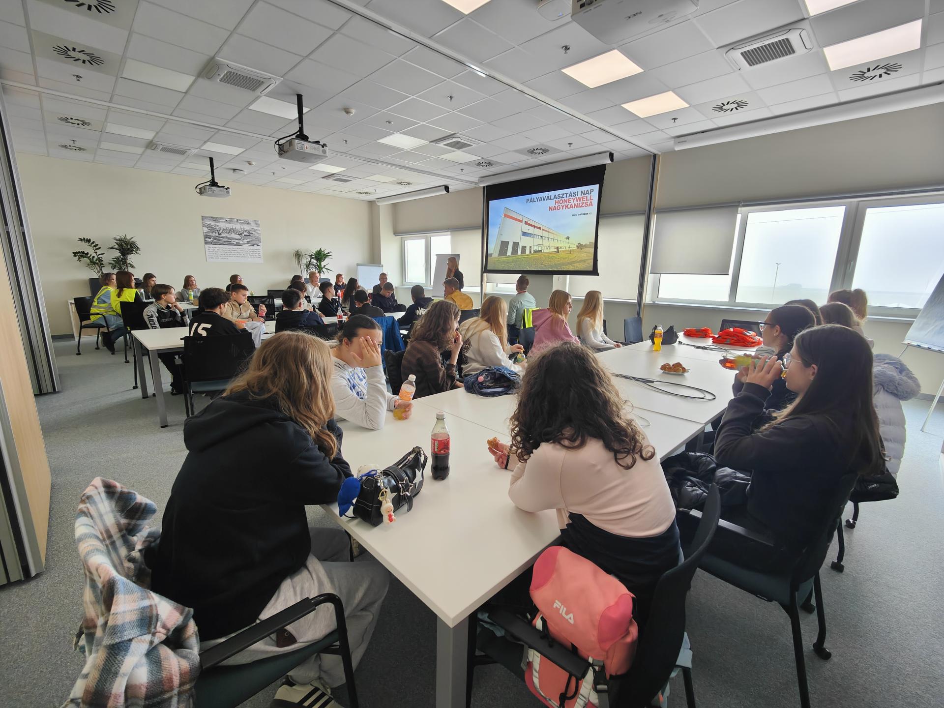 A 8. osztály tanulói két üzembe látogattak el a pályaorientációs napon. Elsőként a Honeywell- ben jártak. Megismerkedtek a gyárban betölthető munkakörökkel, a pozíciókhoz szükséges tanulási utakkal. Bepillanthattak a gyártás folyamatába a gyártó üzemben, majd a raktárba is, ahol a targoncákat és a csomagológépet is láthatták működés közben. Második állomás a HeniCuki cukrászüzem volt, ahol a süteménykészítés folyamatán vezették végig a diákokat. Kóstolóval zárult a program. Mindkét helyszínen a pályaválasztást segítő élményeket gyűjtöttek a tanulók.